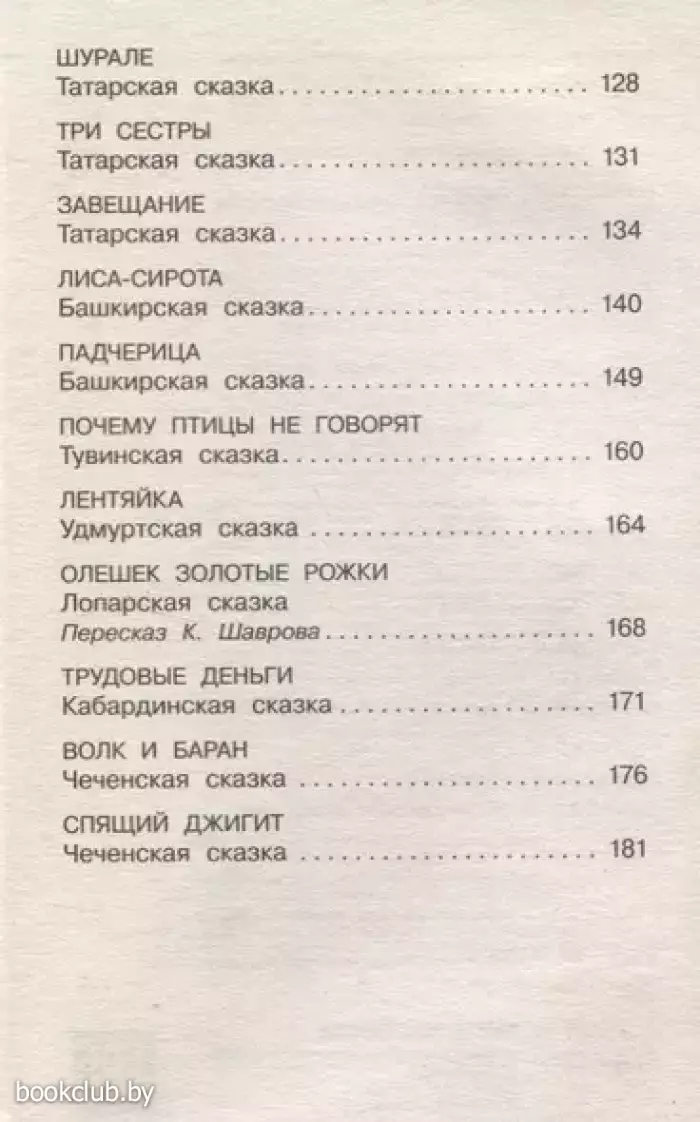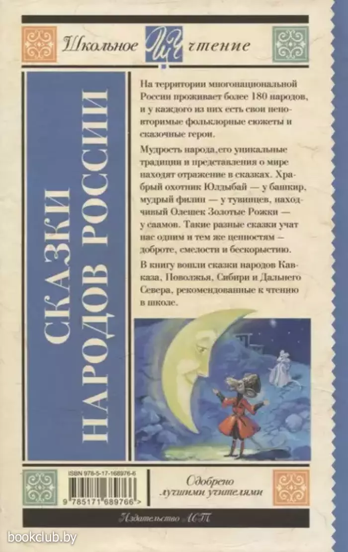 отражение в сказках. Храбрый охотник Юлдыбай — у башкир, мудрый филич — у тузинцев, находчивый Олешек Золотые Рожки — у саамов. Такие разные сказки учат нас одним и тем же ценностям — доброте, смелости и бескорыстию. В книгу вошли сказки народов Кавказа, Поволжья, Сибири и Дальнего Севера, рекомендованные к чтению в школе.