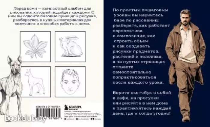 Под обложкой нового скетчбука собраны пошаговые уроки и авторские советы, чтобы начать рисовать. Вместе с ним вы не только изучите базу рисунка — от первых простых набросков до работы с объемом, линией и композицией, но и закрепите полученные знания на практике. Вы узнаете, как делать быстрые и делательные скетчи предметов, зданий, животных и даже людей.