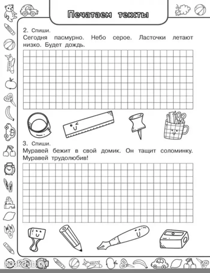 1 класс — это не стресс, а ступенька в успешное будущее! Подготовить ребёнка к школе вам поможет Ольга Васильевна Узорова — известный педагог-практик, автор более 6 000 книг для дошкольников и учеников младших классов. Суммарный тираж книг автора к 2024 году составил более 55 миллионов экземпляров. О. В. Узорова признана одним из наиболее востребованных в России авторов учебных пособий. Задания книги «Скоро в школу: учимся писать» построены по принципу «от простого — к сложному». Сначала ребёнок подготовит руку к письму — потренируется выполнять штриховку, рисовать орнаменты и писать печатные буквы; затем освоит элементы прописных букв и варианты их соединения; и, наконец, напишет свои первые слова и предложения. В книге учтены все детали — наклон букв, их размер, правильность соединения элементов, размещение буквы на рабочей строке. Учимся писать легко и с удовольствием!