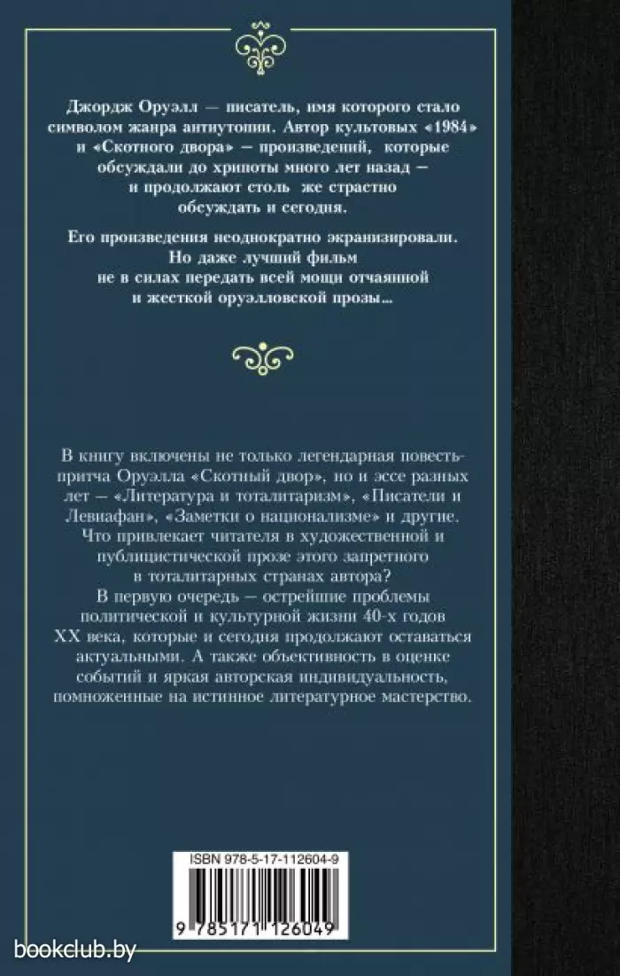 В книгу включена не только легендарная повесть-притча Оруэлла "Скотный двор", но и эссе разных лет – "Литература и тоталитаризм", "Писатели и Левиафан", "Заметки о национализме" и другие.
