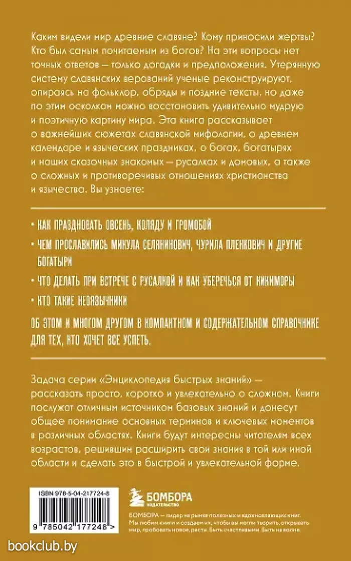 Книга «Славянская мифология. Для тех, кто хочет все успеть» не только принесёт множество приятных эмоций, но и может послужить замечательным подарком для ваших близких. Для вашего удобства при оформлении заказа по телефону назовите код товара: 416451