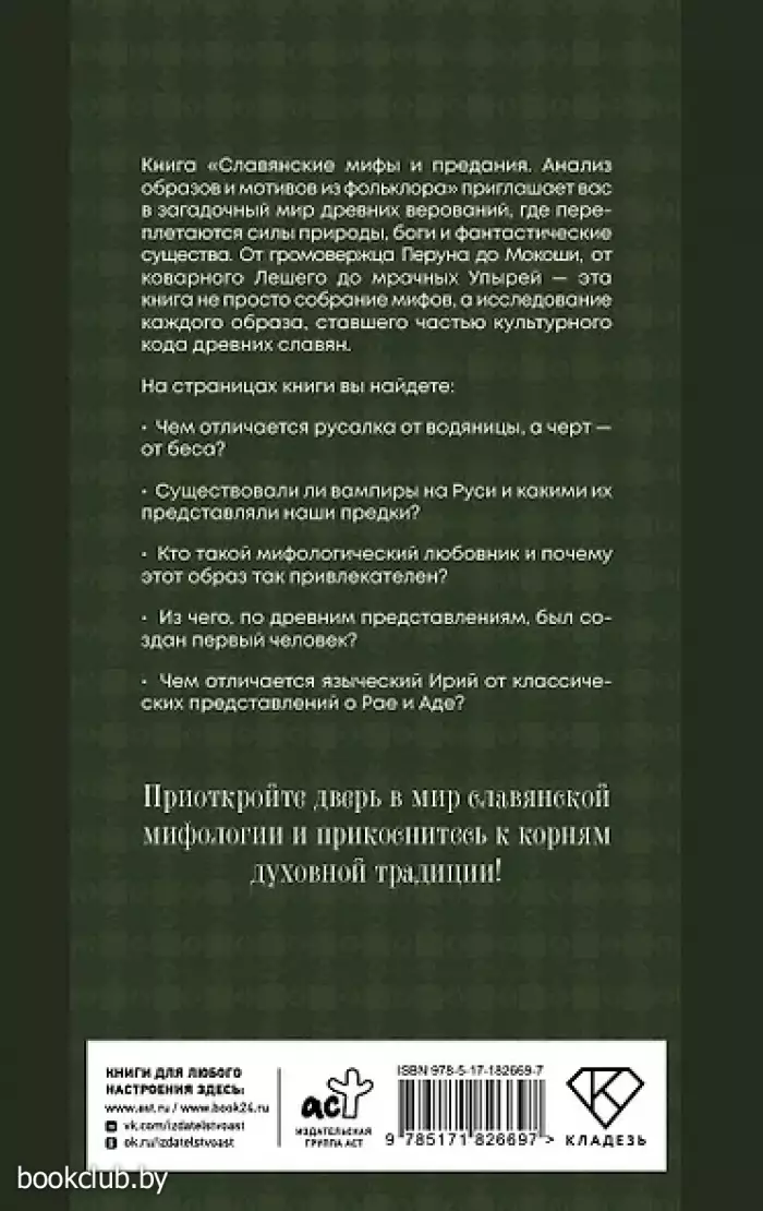 Книга "Славянские мифы и предания. Анализ образов и мотивов из фольклора" приглашает вас в загадочный мир древних верований, где переплетаются силы природы, боги и фантастические существа. От громовержца Перуна до Мокоши, от коварного Лешего до мрачных Упырей — эта книга не просто собрание мифов, а исследование каждого образа, ставшего частью культурного кода древних славян.