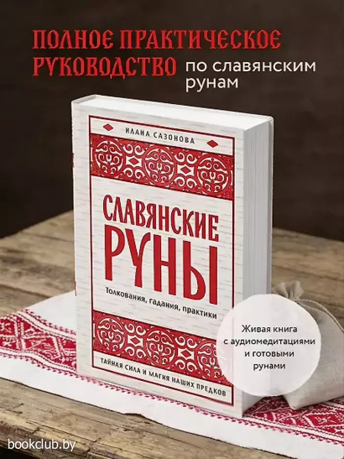 Внутри: вклейка с рунами для гадания, цветные изображения славянских богов, медитации в аудио-формате по QR-коду, полезные приложения для более глубокой работы с рунами.