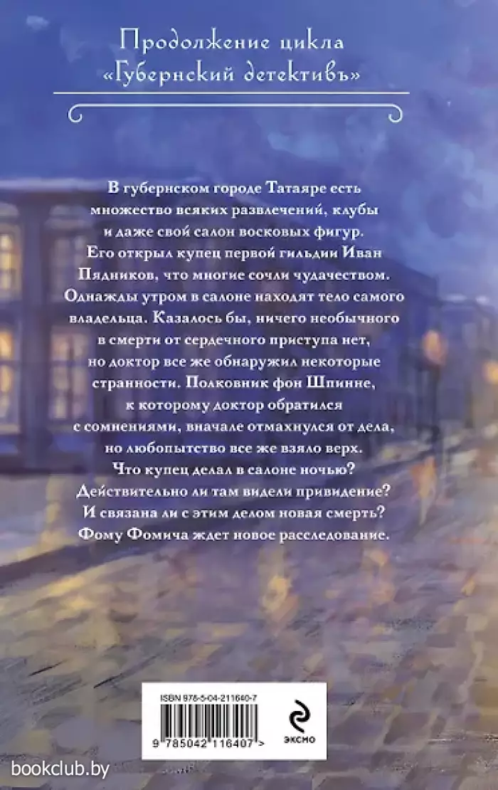 В губернском городе Татаяре есть множество всяких развлечений, клубы, и даже свой салон восковых фигур. Его открыл купец первой гильдии Иван Пядников, что многие сочли чудачеством. Однажды утром в салоне находят тело самого владельца. Казалось бы, ничего необычного в смерти от сердечного приступа нет, но доктор все же обнаружил некоторые странности. Полковник фон Шпинне, к которому доктор обратился с сомнениями, вначале отмахнулся от дела, но любопытство все же взяло верх. Что купец делал в салоне ночью? Действительно ли там видели привидение? И связана ли с этим делом новая смерть? Фому Фомича ждет новое расследование.