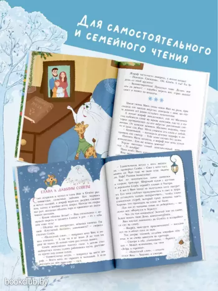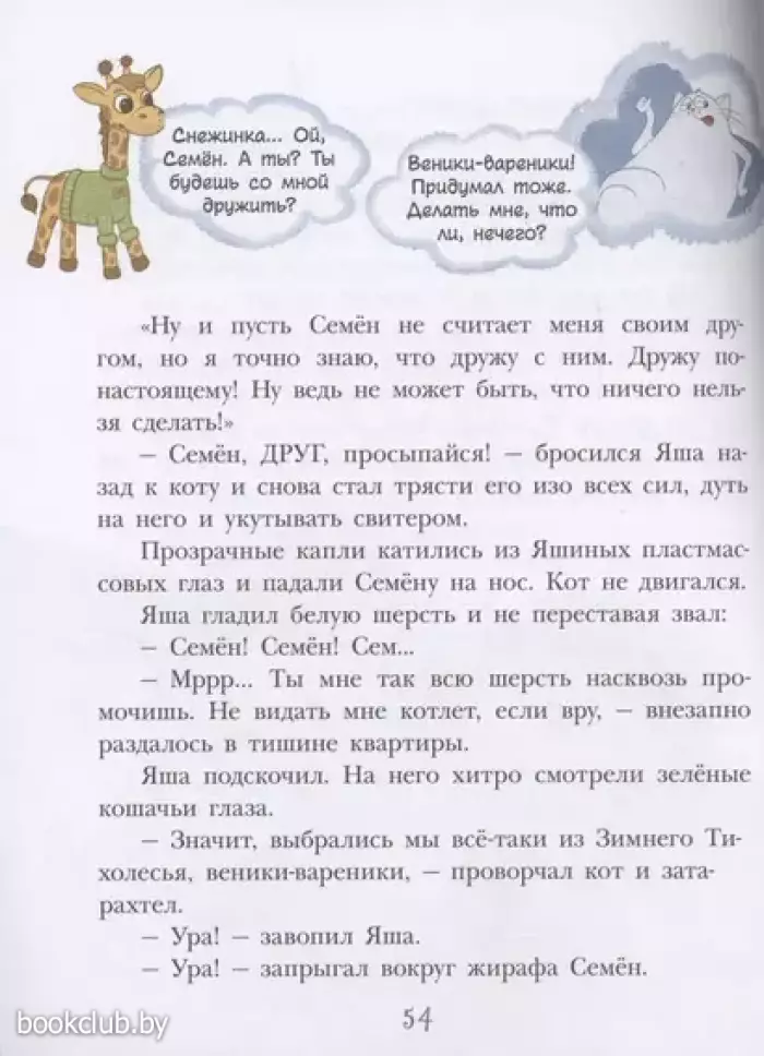 Плюшевый жираф Яша очутился в маленьком сибирском городке прямо под Новый год. Он прибыл из жаркой Африки и ни разу не видел снега. Оказалось, снег пушистый, холодный, хрустящий! А ещё говорящий! В квартире своей хозяйки Яша обнаружил огромный пушистый белый сугроб. Кто же это? Открывай книгу, и узнаешь, удастся ли Яше подружиться с болтушкой-Снежинкой, пробраться в Зимнее Тихолесье и спасти маму одной очень доброй первоклашки.