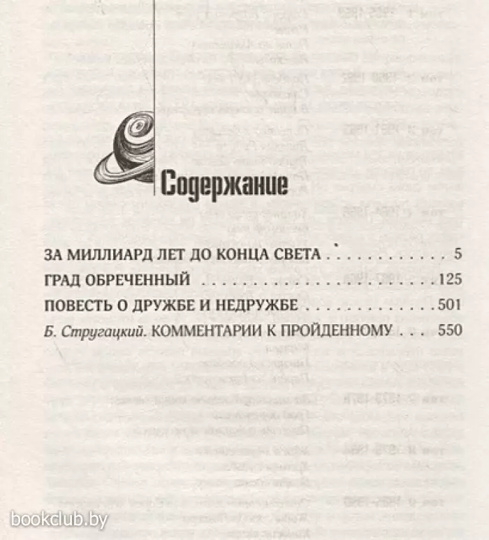 В этот том вошли "За миллиард лет до конца света"; "Град обреченный"; "Повесть о дружбе и недружбе".