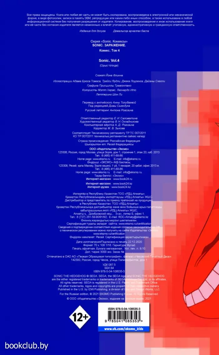 Новые потрясающие приключения Соника и его друзей. Перевод, верстка и леттеринг от команды фанатов Соника Diamond Dust при участии Сыендука! После своих недавних захватывающих приключений Соник наконец может отдохнуть… или нет? ! Бандитская парочка, Раф и Тамбл, вернулась, чтобы отомстить Сонику и его друзьям. И не только они… Заклятые враги ежа тоже не дремлют. Заручившись поддержкой новых зловещих союзников, они уже строят коварные планы по захвату мира. Даже Соник не сможет убегать от Вируса вечно. Книги издательства «ЭКСМО» из серии «Sonic. Комиксы» станут прекрасным дополнением вашей библиотеки. Для вашего удобства при оформлении заказа по телефону назовите код товара: 136321