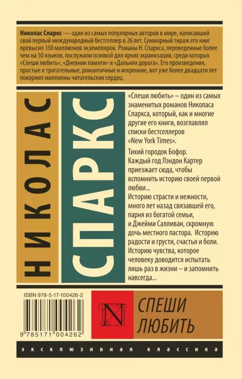 Тихий городок Бофор. Каждый год Лэндон Картер приезжает сюда, чтобы вспомнить историю своей первой любви… Историю страсти и нежности, много лет назад связавшей его, парня из богатой семьи, и Джейми Салливан, скромную дочь местного пастора.