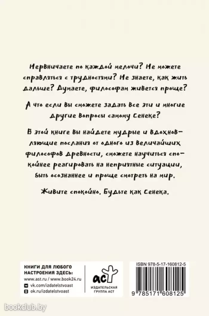 Мы каждый день задаем себе сложные жизненные вопросы и не знаем, где найти на них ответы. А что, если бы вы могли задать их великому философу Луцию Аннеке Сенеке? В этой книге вы найдете мудрые и вдохновляющие послания от одного из величайших философов древности, сможете научиться спокойнее реагировать на неприятные ситуации, быть осознаннее и проще смотреть на мир.