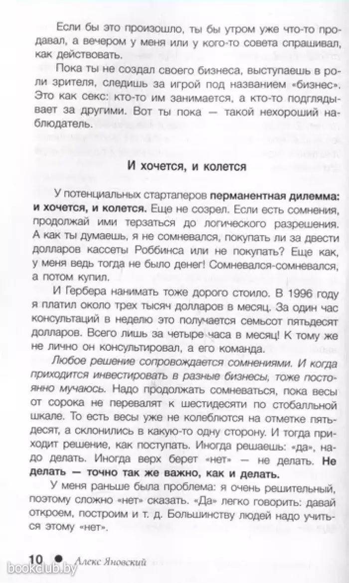 В этой книге есть много практических советов для начинающих предпринимателей — и это не сухая теория, а практика построения бизнеса. Алекс, как бизнес-доктор, продиагностировал множество бизнесов и на конкретных примерах предложил рецепты реанимации, выздоровления и процветания стартапов."