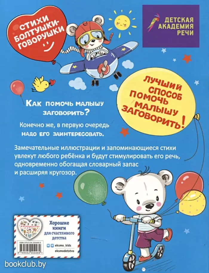 Развивающая книга для малышей с весёлыми короткими стихотворениями, которые очень любят дети, будет ненавязчиво стимулировать речь и поможет заговорить любому ребенку. Слушая стихи, повторяя их, выполняя задания, малыш улучшит свои речевые навыки. Дыхательные упражнения помогут развить артикуляционный аппарат. А квалифицированные советы специалистов подскажут взрослым, как правильно построить занятие, чтобы быстро получить желаемый результат. Занимаясь по книге, родители смогут замечательно провести время с ребенком, а также сформировать артикуляцию, ускорить развитие чёткой и понятной речи, увеличить словарный запас и расширить кругозор.