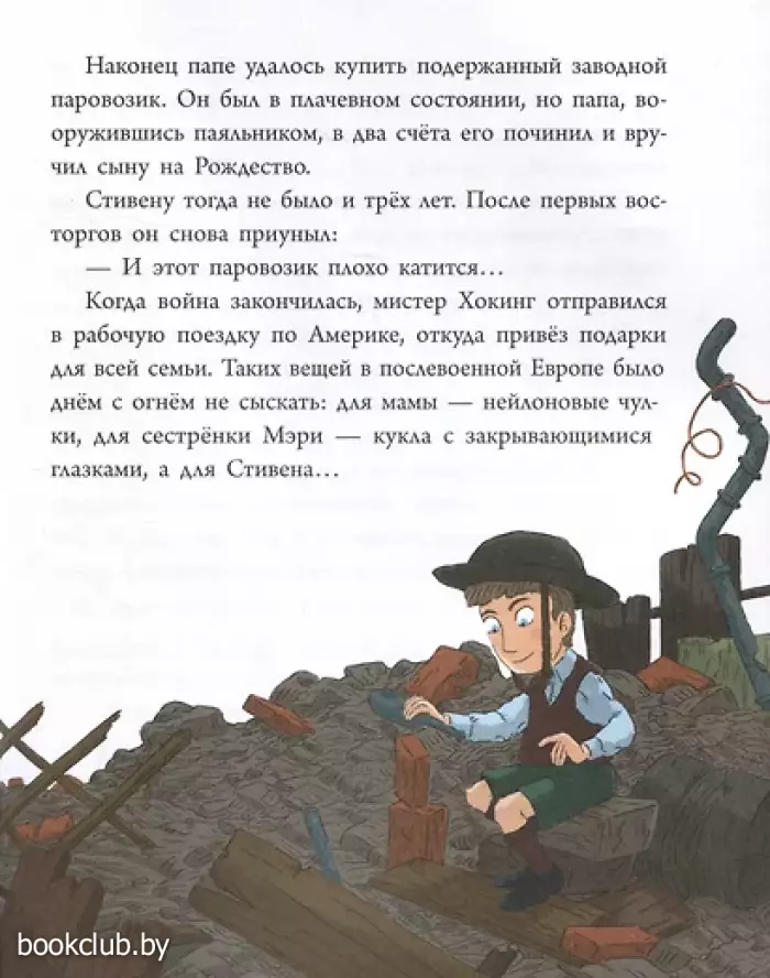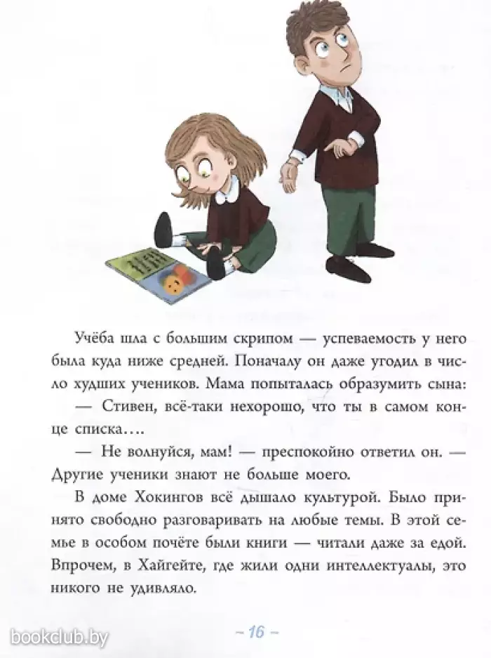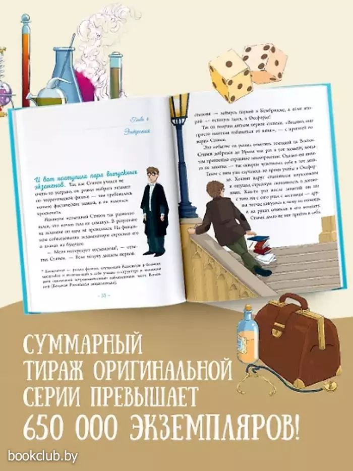 Главный в мире по чёрным дырам. Стивен Хокинг — британский физик-теоретик, космолог, писатель. Его невероятная популярность вырвалась за границы научного мира — он стал настоящей звездой поп-культуры. Редчайший случай для учёного! О его жизни и научных теориях ставили спектакли, снимали художественные и документальные фильмы. Стивен играл самого себя в комедиях и научно-фантастических сериалах. И даже стал героем мультиков! Хокинг был не только одним из самых блестящих и знаменитых учёных нашего столетия, но и человеком с превосходным чувством юмора. Он смеялся над своими недугами. Тяжёлая прогрессирующая болезнь лишила его возможности двигаться — бóльшую часть жизни Стивен был прикован к инвалидной коляске. Но это не мешало ему заниматься сложнейшими вычислениями и писать научно-популярные книги про Вселенную, которые стали настоящими бестселлерами.