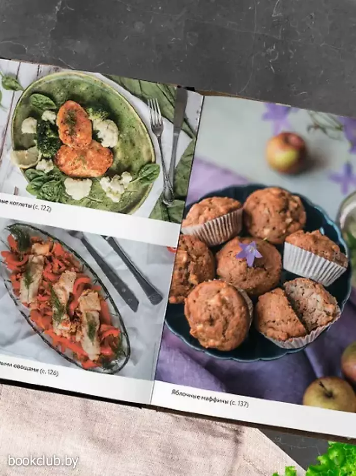 Также в рецептах представлена информация о том, на какое количество порций рассчитаны приведенные объемы продуктов. Эти сведения достаточно условны — ведь аппетиты у всех разные, к тому же, например, крупному мужчине нужно больше еды, чем невысокой миниатюрной девушке. Но все же эта информация поможет сориентироваться тем, чей опыт в самостоятельной готовке пока не очень велик. В конце книги представлено примерное меню на месяц, которое также может стать для вас источником вдохновения.