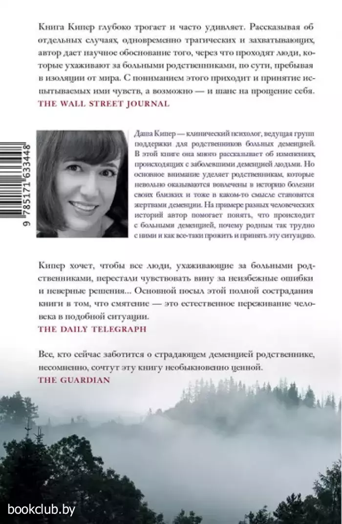 Даша Кипер — клинический психолог, ведущая групп поддержки для родственников больных деменцией. В этой книге она много рассказывает об изменениях, происходящих с заболевшими деменцией людьми. Но основное внимание уделяет родственникам, которые невольно оказываются вовлечены в историю болезни своих близких и тоже в каком-то смысле становятся жертвами деменции. На примере разных человеческих историй автор помогает понять, что происходит с больными деменцией, почему родным так трудно с ними и как все-таки прожить и принять эту ситуацию.