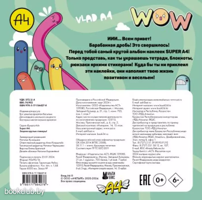 Книга «Super A4. Зацени крутые стикеры!» не только принесёт множество приятных эмоций, но и может послужить замечательным подарком для ваших близких. Для вашего удобства при оформлении заказа по телефону назовите код товара: 400816