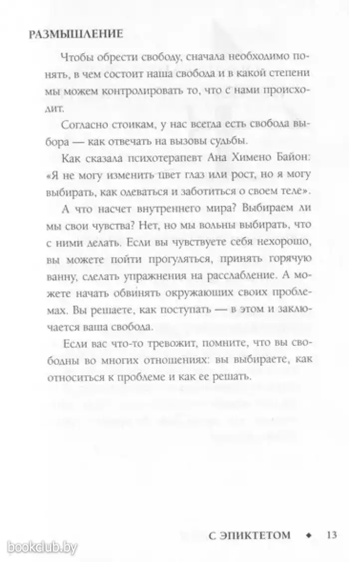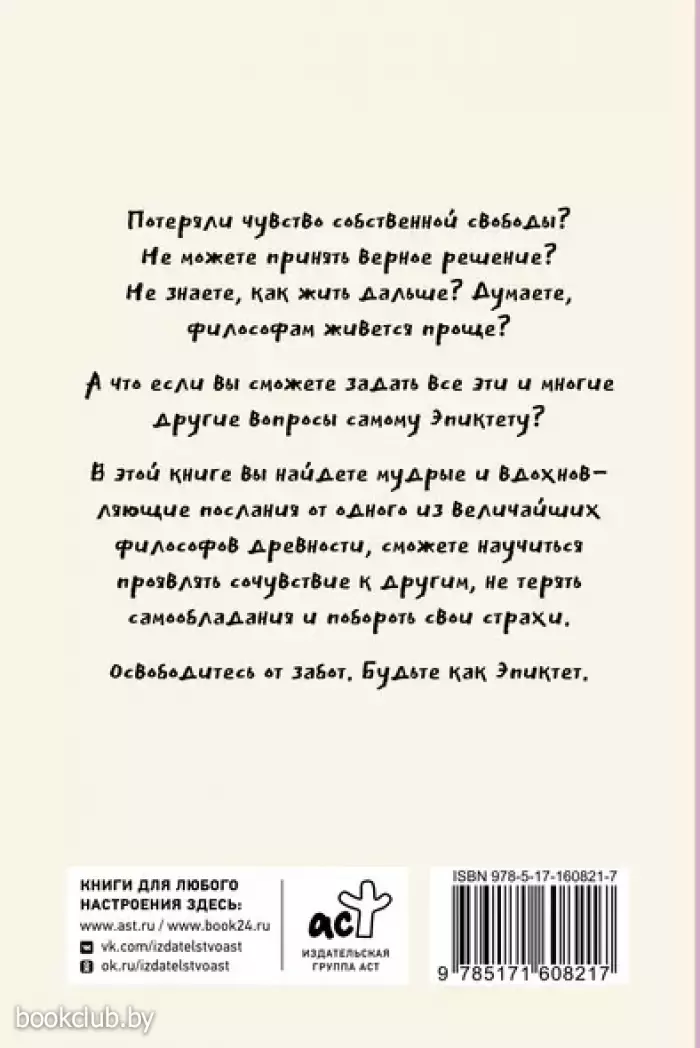 Мы каждый день задаем себе сложные жизненные вопросы и не знаем, где найти на них ответы. А что, если бы вы могли задать их великому философу Эпиктету? В этой книге вы найдете мудрые и вдохновляющие послания от одного из величайших философов древности, сможете научиться проявлять сочувствие к другим, не терять самообладания и побороть свои страхи.