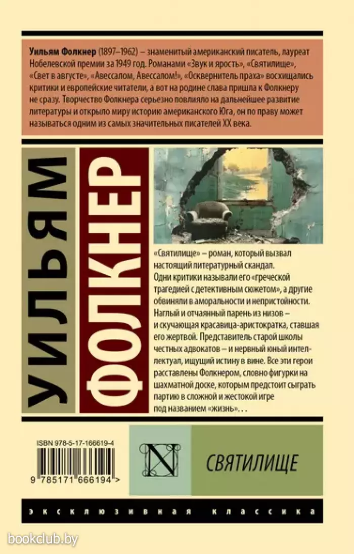 «Святилище» – роман, который вызвал настоящий литературный скандал. Одни критики называли его «греческой трагедией с детективным сюжетом», а другие обвиняли в аморальности и непристойности. Наглый и отчаянный парень из низов – и скучающая красавица-аристократка, ставшая его жертвой. Представитель «старой школы» честных адвокатов – и нервный юный интеллектуал, ищущий истину в вине. Все эти герои расставлены Фолкнером, словно фигурки на шахматной доске, которым предстоит сыграть партию в сложной и жестокой игре под названием «жизнь»…
