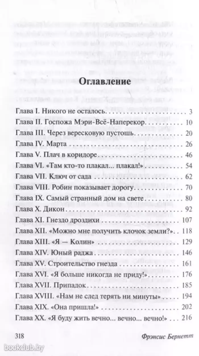 В центре романа «Таинственный сад» – десятилетняя Мери Леннокс, вернувшаяся из Индии в Англию после смерти родителей. В поместье ее дяди Арчибальда Крэвена Мери вынуждена привыкать к совершенно другой жизни, непохожей на ту, что была у нее до сих пор. Однажды девочка узнает о загадочном заброшенном саде, в который запрещено входить, и решает разыскать его. Вместе с новыми друзьями Мери предстоит проникнуть в тайны этого удивительного места, преображающего души людей.