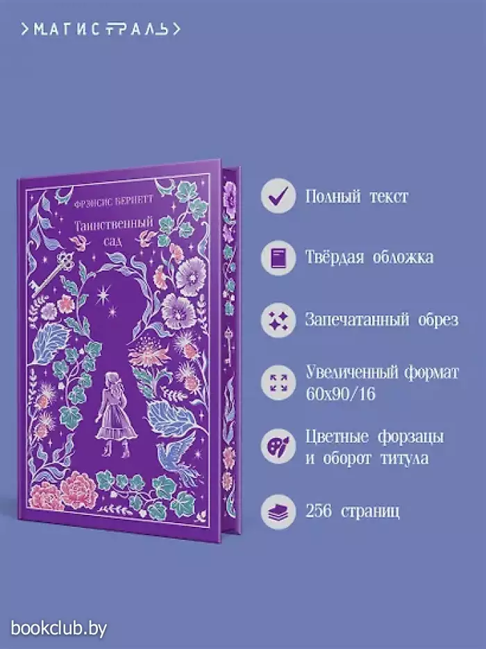 Внезапно осиротевшей Мэри приходится привыкать к новой жизни. Ее отправляют в Англию, к дяде, дом которого скрывает много тайн. Невзрачную и хмурую девочку никто не любит. Ей очень одиноко. Она узнает, что в старинном поместье есть сад, куда запрещено входить. Мэри постоянно нарушает правила, а место, окруженное загадками, особенно притягивает ее. Она решает разгадать секрет Таинственного сада. Однажды она находит потайную дверь в удивительный мир и с этого момента начинает верить в волшебство. Для поклонниц «Маленьких женщин» Л.М. Олкотт. Летом 2020 года вышла невероятно красивая экранизация по мотивам романа, в главных ролях Колин Фёрт и Дикси Эгерикс. Новая серия классики для поклонников «Магистраль. Главный тренд» в твёрдой обложке. Безупречность стиля, лаконичность, тактильные материалы, цветные форзацы, рисунок на обрезе. Книги издательства «ЭКСМО» из серии «Магистраль. Коллекция» - отличное приобретение для вас и ваших близких. Для вашего удобства при оформлении заказа по телефону назовите код товара: 417050