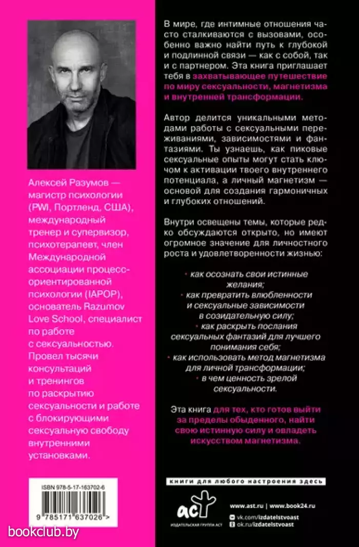 Автор делится уникальными методами работы с сексуальными переживаниями, зависимостями и фантазиями. Ты узнаешь, как пиковые сексуальные опыты могут стать ключом к активации твоего внутреннего потенциала, а личный магнетизм — основой для создания гармоничных и глубоких отношений.