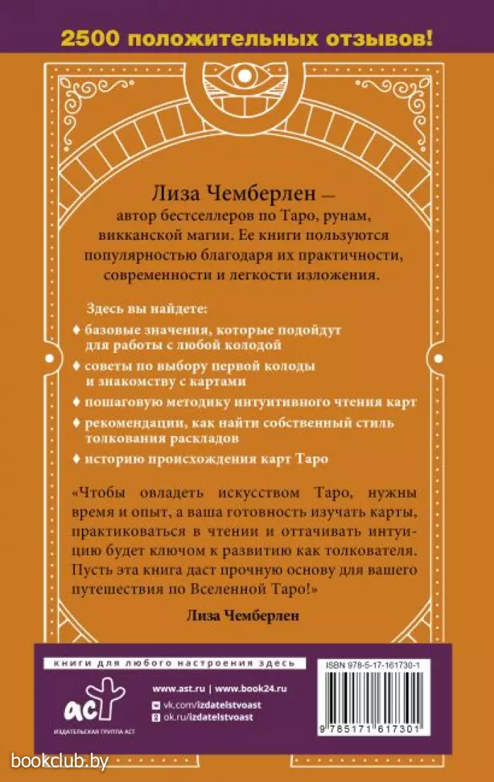 Лиза Чемберлен — настоящий мастер Таро, а ее книгам доверяют сотни тысяч читателей по всему миру. Она написала это руководство специально для тех, кто хочет научиться читать и понимать карты самостоятельно. Автор приводит простые и эффективные стратегии знакомства с каждой картой, рассказывает про их базовые значения. Именно эти знания помогут вам не просто выучить значения карт, а понять глубинную суть Таро и делать точные расклады.