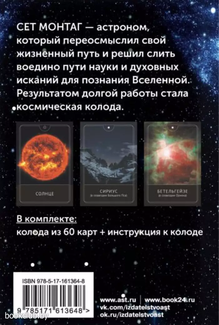 Сет Монтаг, бывший астроном, а ныне духовный практик, создал колоду карт, используя изображения космических объектов. Через энергии реальных участников космического движения человек может приблизиться к познанию законов Вселенной и получить информацию о будущем.