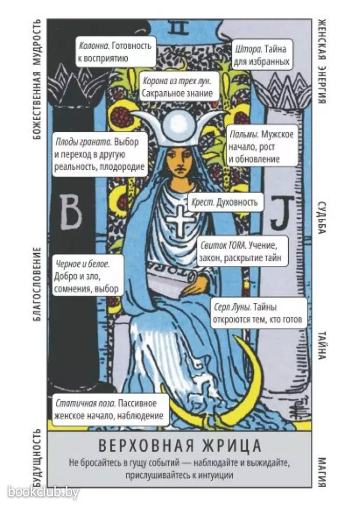 Теперь вы сможете доверять даже своим первым раскладам — благодаря полной картине символов на каждой карте вы сможете индивидуализировать расклад, не прерывая гадания на "подглядывание".