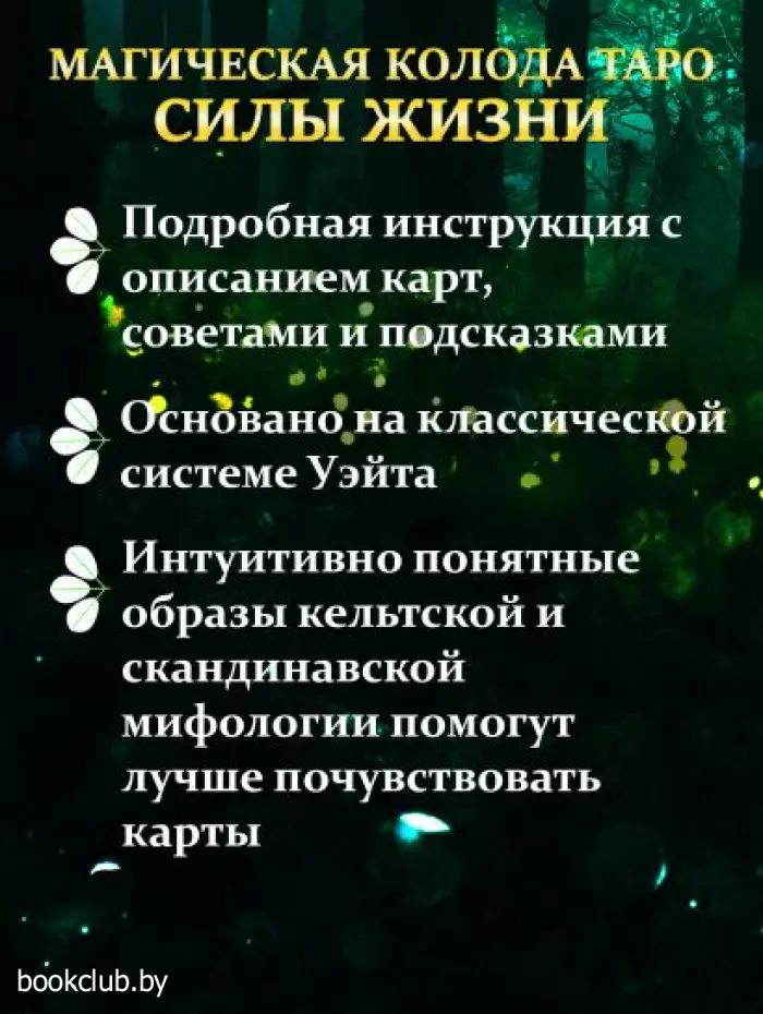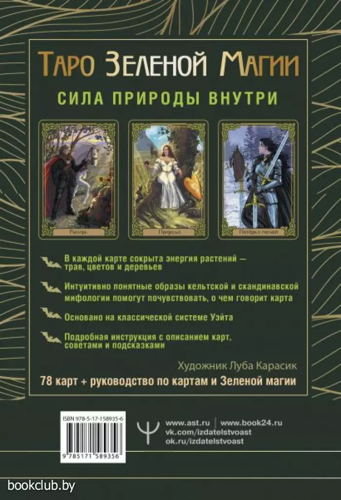 "Таро Зеленой магии" создано на основе классической колоды Уэйта, но имеет уникальную энергетику, раскрывающуюся в образах карт. Персонажи, изображенные на Арканах, отсылают к кельтской (и частично скандинавской) мифологии, к их архетипам героев и богов. А растительные символы на каждой карте подсказывают, откуда можно черпать дополнительную силу в момент расклада.