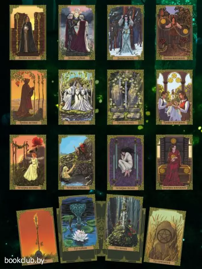В этой колоде настоящее, прошлое и будущее переплетаются между собой, напоминая нам о том, что времени не существует. Здесь вас встретят танцующие пикси, играющий на дудочке лепрекон и сам великий друид Мерлин, вещающий сквозь века, чтобы ответить на ваши вопросы.