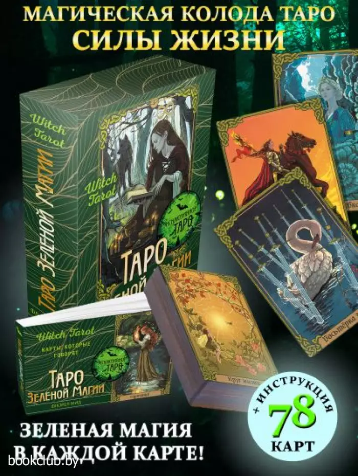 "Таро Зеленой магии" — 78 мистических карт, которые помогут вам стать настоящей ведьмой или ведьмаком. Эта колода словно колдовское зелье, замешанное на энергиях кельтских богов и героев, растений и трав, которые вместе дают раскладам особую силу.