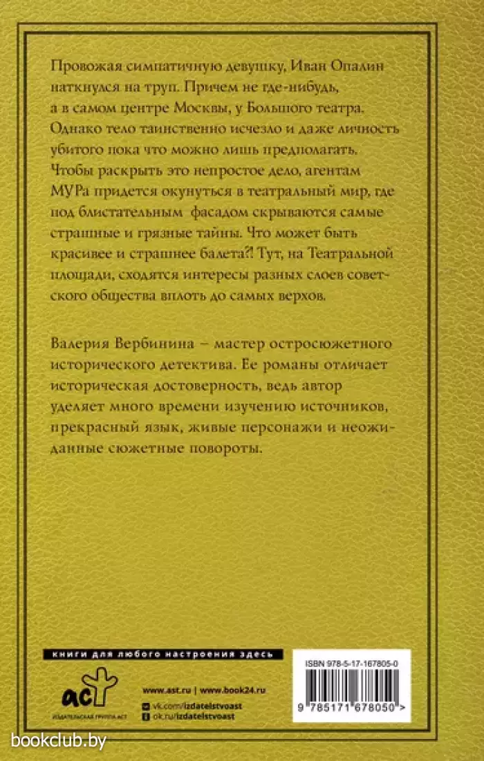 Провожая симпатичную девушку, Иван Опалин наткнулся на труп. Причем не где-нибудь, а в самом центре Москвы, у Большого театра. Однако тело таинственно исчезло и даже личность убитого пока что можно лишь предполагать. Чтобы раскрыть это непростое дело, агентам МУРа придется окунуться в театральный мир, где под блистательным фасадом скрываются самые страшные и грязные тайны. Что может быть красивее и страшнее балета?!.. Тут, на Театральной площади, сходятся интересы разных слоев советского общества вплоть до самых верхов.