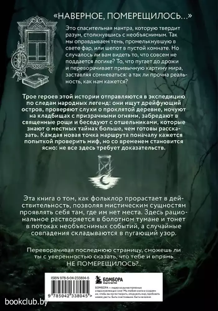 Перед вами мистическая история-путешествие по самым загадочным местам Нижегородской области, где фольклор и мифы, реальные локации и рассказы очевидцев складываются в историю, которой сложно не поверить. Трое героев отправляются в экспедицию по следам народных легенд: они ищут дрейфующий остров, проверяют слухи о проклятой деревне, ночуют на кладбищах со странными огнями, заходят в священные рощи и беседуют с отшельниками, которые знают о местных тайнах больше, чем готовы рассказать. Каждая новая точка маршрута кажется попыткой проверить легенду, но со временем становится ясно: не все здесь требует доказательств. Атмосфера роуд-муви создает особенно глубокое погружение: дорога, остановки, разговоры у костра, ночные съемки и ощущение чужого присутствия, которое невозможно зафиксировать камерой. Рациональные объяснения здесь всегда рядом — газы, галлюцинации, усталость, страх, — но они не отменяют главного вопроса: почему слишком многое совпадает? Эта книга балансирует между мистикой и реальностью, оставляя читателя один на один с ощущением тревожной неопределенности. Потому что иногда самое страшное — не увидеть нечто необъяснимое, а понять, что ты уже внутри легенды. В этой книге: • Мистическая история, основанная на реальных легендах и местах Нижегородской области. • Смена локаций и эффект присутствия. • 100% погружение в атмосферу глухих деревень, лесов, болот и заброшек. • Мурашки по коже без скримеров. • Безграничный интерес к тому, где проходит грань между фольклором и реальностью. Переворачивая последнюю страницу, сможешь ли ты ответить на вопрос: тебе не померещилось?.. Книги издательства «ЭКСМО» из серии «Путешествия по культурам мира» станут прекрасным дополнением вашей библиотеки. Для вашего удобства при оформлении заказа по телефону назовите код товара: 417008