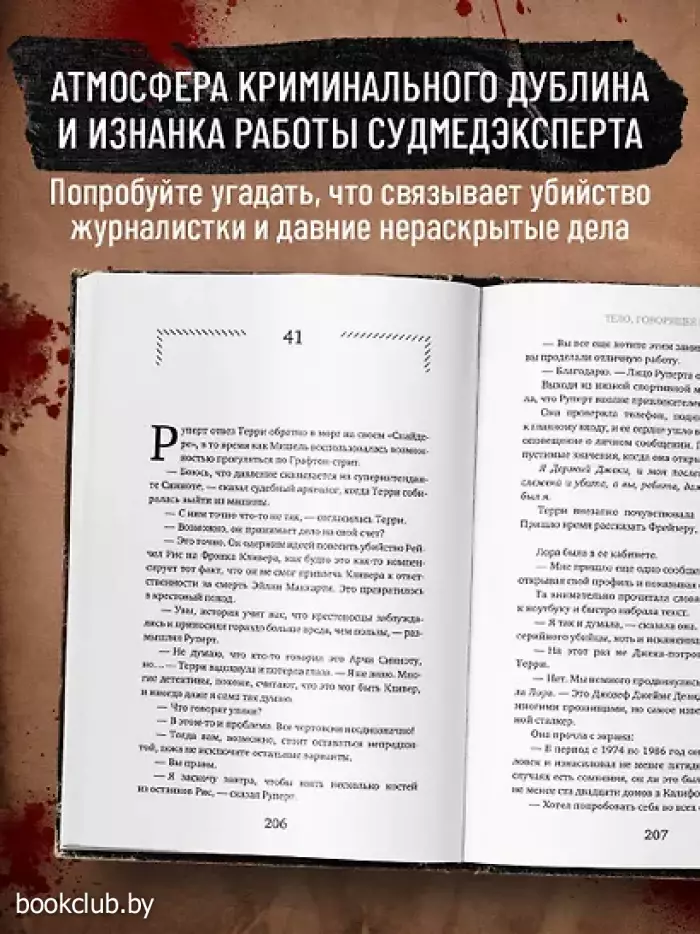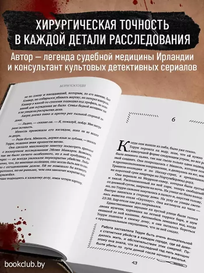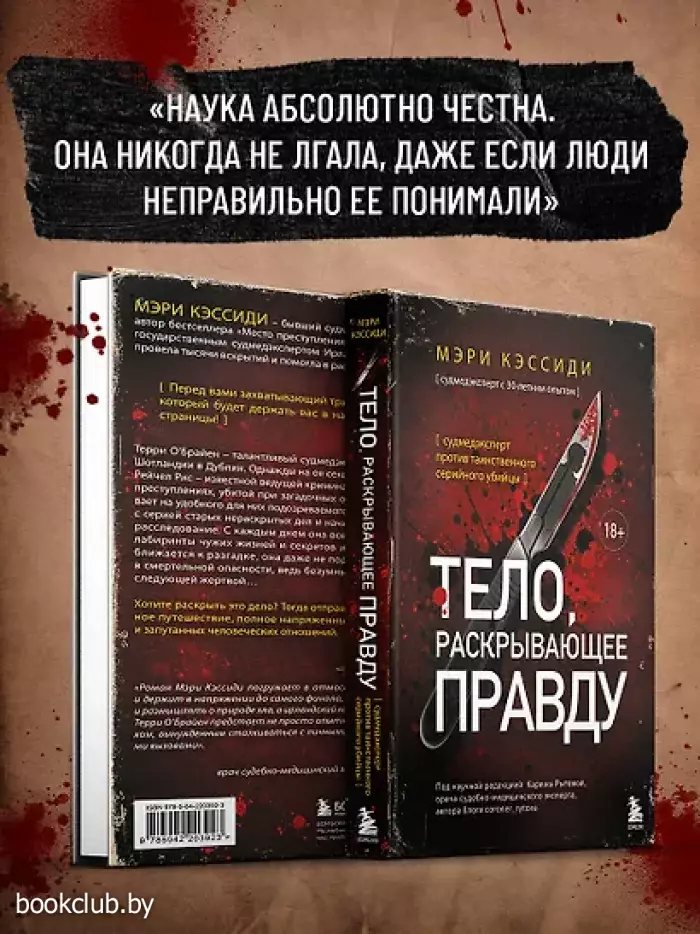 Перед вами захватывающий судебный триллер от Мэри Кэссиди — бывшего судмедэксперта с 30-летним опытом, имевшей дело с сотнями убийств, и автора бестселлера «Место преступления — тело». Главная героиня романа Терри О’Брайен — талантливый судмедэксперт, она недавно переехала из Шотландии в Дублин, где работает в морге и сотрудничает с ирландской полицией. Однажды на секционном столе Терри оказывается тело Рейчел Рис — известной ведущей криминального подкаста о нераскрытых преступлениях, убитой при загадочных обстоятельствах. Убийца практически не оставил следов, и полиция выдвигает удобного для них подозреваемого. Но опытный взгляд Терри раскрывает иную картину, она находит взаимосвязь с серией старых нераскрытых убийств и начинает вести собственное тайное расследование. Погружаясь в темные тайны прошлого, она все ближе подходит к разгадке, но даже не подозревает, что серийный убийца уже наметил ее своей следующей жертвой… Хотите раскрыть правду вместе с Терри? Тогда приготовьтесь отправиться в опасное путешествие, полное загадок, напряженных моментов и запутанных человеческих отношений, которое не отпустит вас до последней страницы! Книга «Тело, раскрывающее правду. Судмедэксперт против таинственного серийного убийцы» - станет прекрасным дополнением вашей библиотеки. Для вашего удобства при оформлении заказа по телефону назовите код товара: 416980