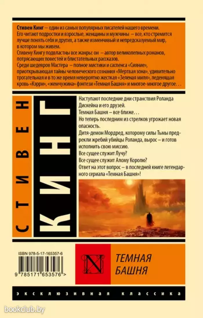 Цикл «Темная Башня» — это opus magnum Стивена Кинга. История последнего стрелка Роланда Дискейна и его друзей. Произведения, входящие в этот цикл, не раз являлись номинантами премии Брэма Стокера. У «Темной Башни» сотни тысяч фанатов и десятки фан-клубов, ей посвящено множество книг и статей. Наступают последние дни странствия Роланда Дискейна и его друзей. Темная Башня — все ближе… Но теперь последним из стрелков угрожает новая опасность. Дитя-демон Мордред, которому силы Тьмы предрекли жребий убийцы Роланда, вырос — и готов исполнить свою миссию. Все сущее служит Лучу? Все сущее служит Алому Королю? Ответ на этот вопрос — в последней книге легендарного сериала «Темная Башня»!