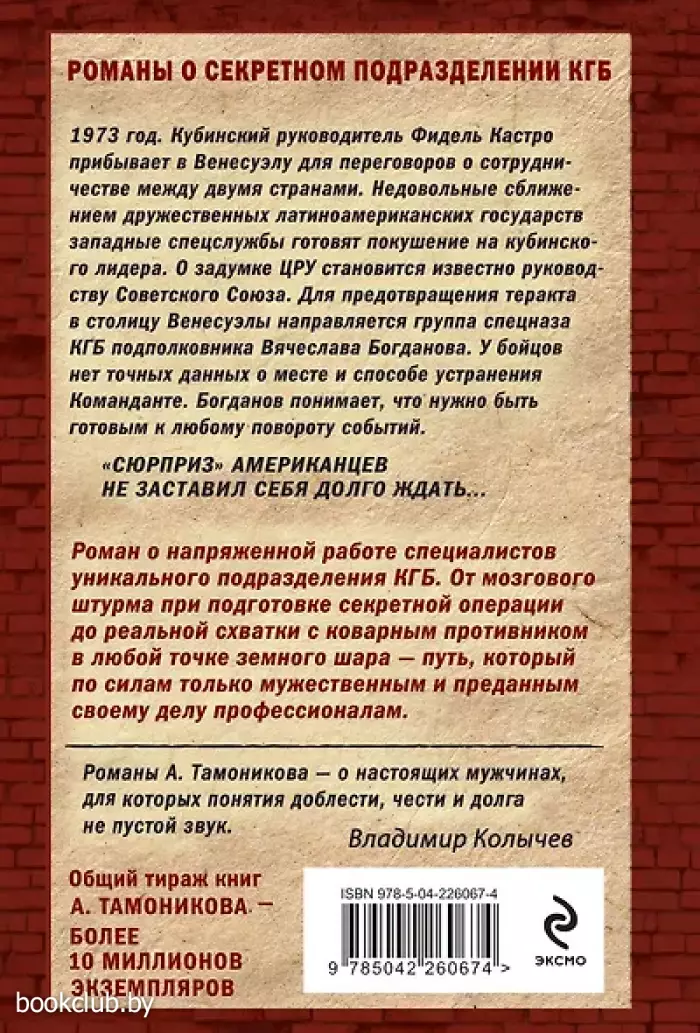 «Романы А. Тамоникова — о настоящих мужчинах, для которых понятия доблести, чести и долга — не пустой звук». — В. Колычев
