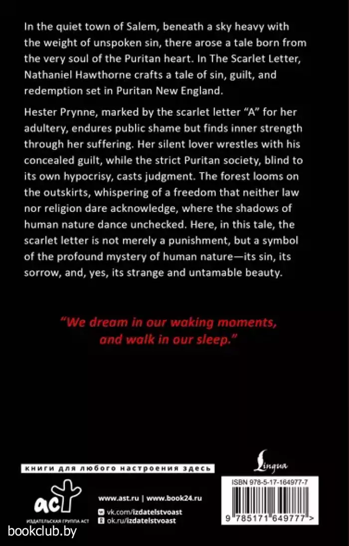 Книга «The Scarlet Letter (м)» - станет прекрасным дополнением вашей библиотеки. Для вашего удобства при оформлении заказа по телефону назовите код товара: 411916