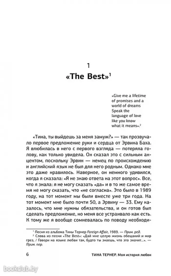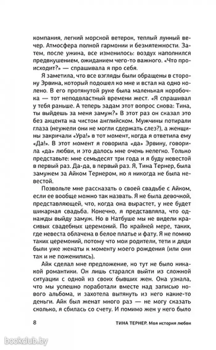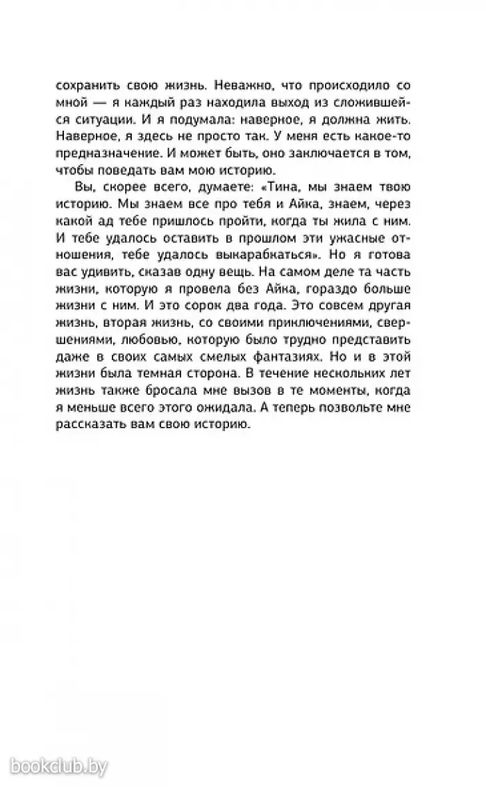 "Моя история любви" — это проникновенная и вдохновляющая история женщины, которая осмелилась сломать все преграды на своем пути, демонстрируя смесь силы и безумной энергии. Она откровенно рассказывает не только о самых безнадежных эпизодах, но и о самых счастливых моментах. Это великолепные мемуары, столь же увлекательные и трогательные, как и любой из лучших хитов Тины Тернер.