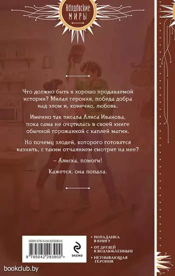 Что должно быть в хорошо продаваемой истории? Милая героиня, победа добра над злом и, конечно, любовь. Именно так писала Алиса Иванова, пока сама не очутилась в своей книге обычной горожанкой с каплей магии. Но почему злодей, которого готовятся казнить, с таким отчаянием смотрит на нее? — Алиска, помоги! Кажется, она попала. 1. Новинка от автора книги «Хозяйка ворон и железный доктор» Галины Герасимовой. 2. Необычная история девушки, попавшей в собственную книгу, ее друга детства, оказавшегося на месте главного злодея, и вымышленного мира, который без присмотра автора начал жить своей жизнью. 3. Находчивая героиня, увидевшая свою книгу изнутри, со всеми несостыковками и неточностями, и вышедшая замуж за злодея (исключительно ради спасения друга детства!). 4. Обаятельный злодей-герцог, списаный автором-попаданкой с друга детства и одержимый своей Истинной. 5. История для тех, кто любит троп «от дружбы до любви», необычных попаданцев, продуманные миры и писательскую кухню изнутри. Книги издательства «ЭКСМО» из серии «Колдовские миры. Новое оформление» станут прекрасным дополнением вашей библиотеки. Для вашего удобства при оформлении заказа по телефону назовите код товара: 416976