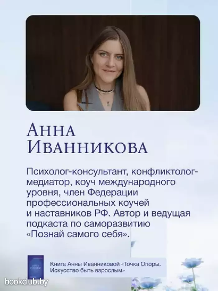 Анна Иванникова — врач, психолог-консультант, конфликтолог-медиатор, коуч международного уровня, член Федерации профессиональных коучей и наставников РФ. Автор и ведущая топ-подкаста в России по саморазвитию «Познай самого себя» с аудиторией более 100 000 слушателей, в котором открыто и простыми словами рассказывает о тайнах человеческого мозга, эффективном мышлении и техниках личностного роста.