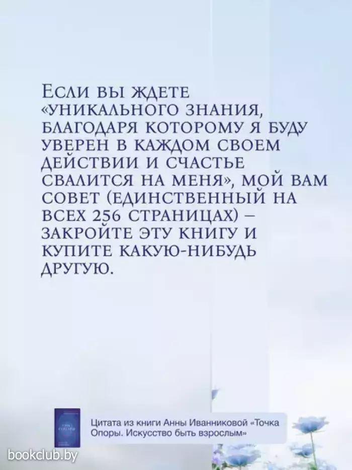 Книга «Точка Опоры. Искусство быть взрослым» не только принесёт множество приятных эмоций, но и может послужить замечательным подарком для ваших близких. Для вашего удобства при оформлении заказа по телефону назовите код товара: 411859