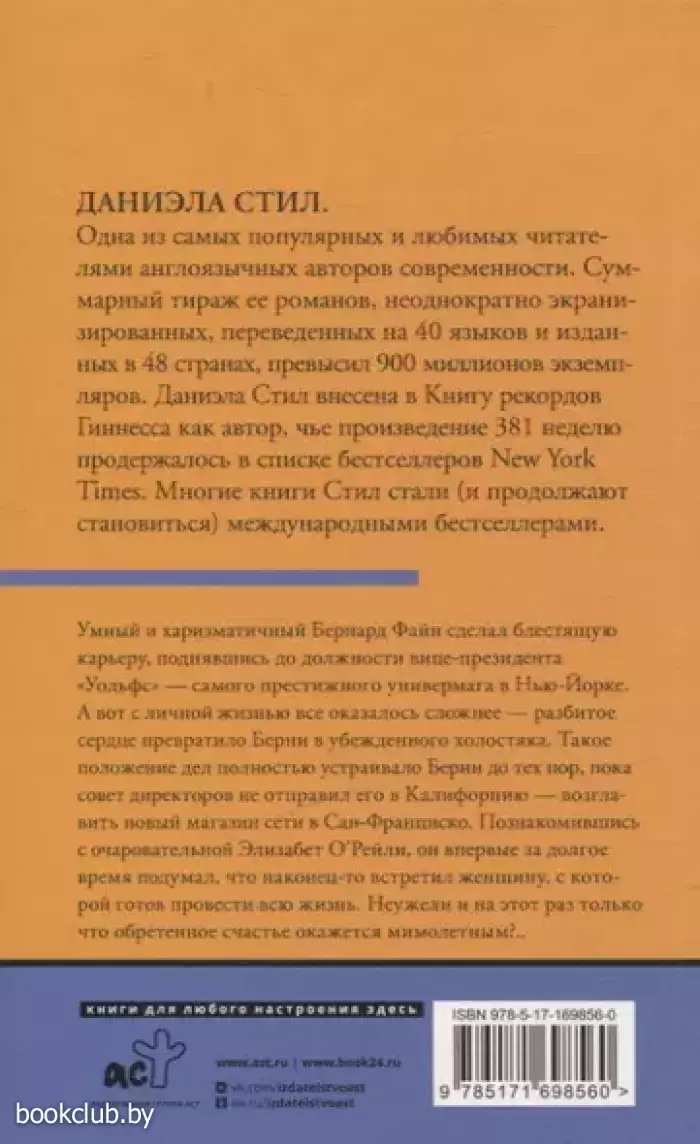 Умный, успешный и харизматичный Берни Файн сделал блестящую карьеру, поднявшись до должности вице-президента «Уольфс» — самого престижного универмага в Нью-Йорке. А вот с личной жизнью все оказалось сложнее — дважды разбитое сердце превратило Берни в убежденного холостяка, женатого только на работе. Такое положение дел полностью устраивало Берни до тех пор, пока совет директоров не отправил его в Калифорнию — возглавить новый магазин сети в Сан-Франциско. Познакомившись с очаровательной Элизабет О’Рейли, он впервые за долгое время подумал, что наконец-то встретил женщину, с которой готов провести всю жизнь. Неужели и на этот раз только что обретенное счастье окажется мимолетным?..