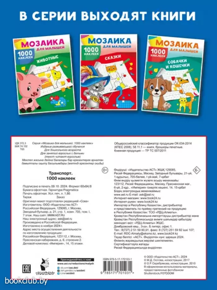 Книги издательства «АСТ» из серии «Мозаика для малышей: 1000 наклеек» станут прекрасным дополнением вашей библиотеки. Для вашего удобства при оформлении заказа по телефону назовите код товара: 411665