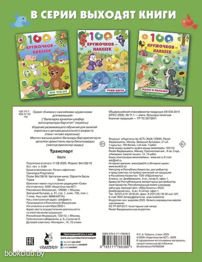 Книги издательства «АСТ» из серии «Книжка с наклейками-кружочками для малышей» станут прекрасным дополнением вашей библиотеки. Для вашего удобства при оформлении заказа по телефону назовите код товара: 415883