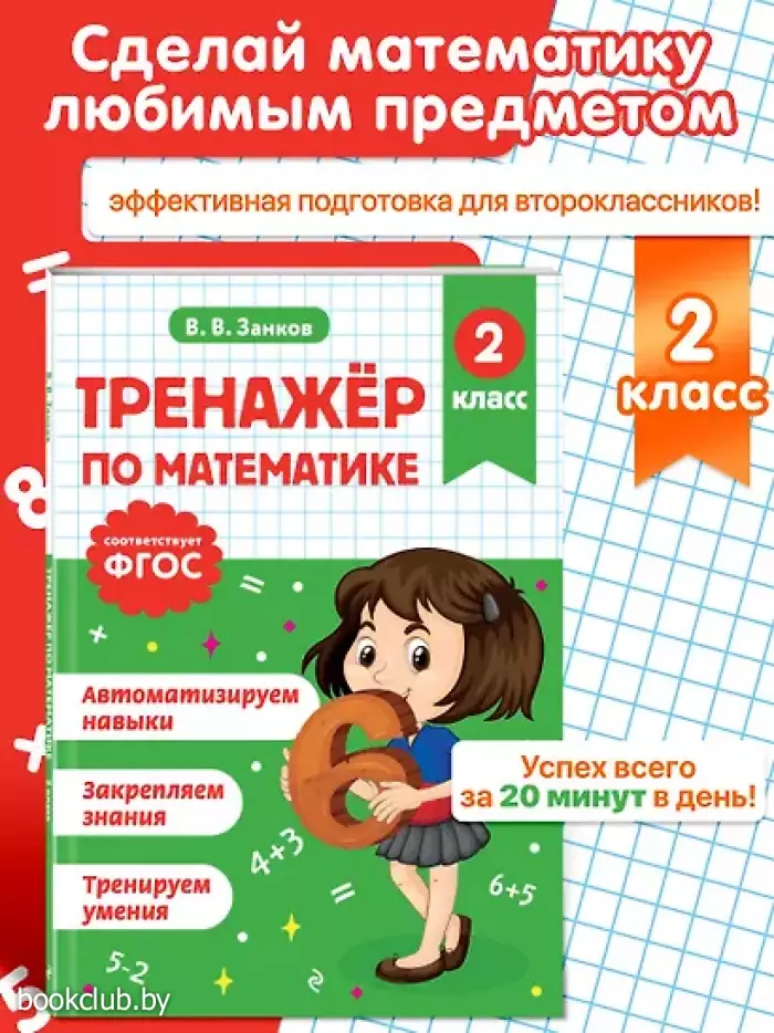 Пособие от издательства «Эксмо», соответствующее ФГОС, разработано специалистом с многолетним опытом работы и станет отличным помощником для учеников 2 класса в отработке умений и навыков, полученных на уроках математики. Решение большого количества примеров на сложение и вычитание в пределах 100, задач в одно и два действия, выражений на табличное умножение и деление, уравнений даст возможность школьникам в дальнейшем избежать вычислительных ошибок и довести навыки счёта до автоматизма. Занимаясь по книге, учащиеся научатся анализировать информацию и понимать учебную задачу, а также смогут закрепить пройденный материал, восполнить пробелы в знаниях, развить математические способности, повысить успеваемость по предмету. Задания в тренажере построены таким образом, чтобы не повторять, а дополнять упражнения, которые предлагаются в школе. Благодаря этому его можно использовать в сочетании с любыми из существующих учебников по математике. Кроме того, в серию входят и пособия по русскому языку для 1, 2, 3 и 4 класса. Только постоянная практика позволит школьнику уверенно чувствовать себя на уроках и получать отличные оценки.