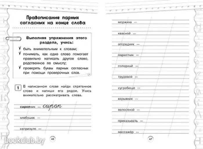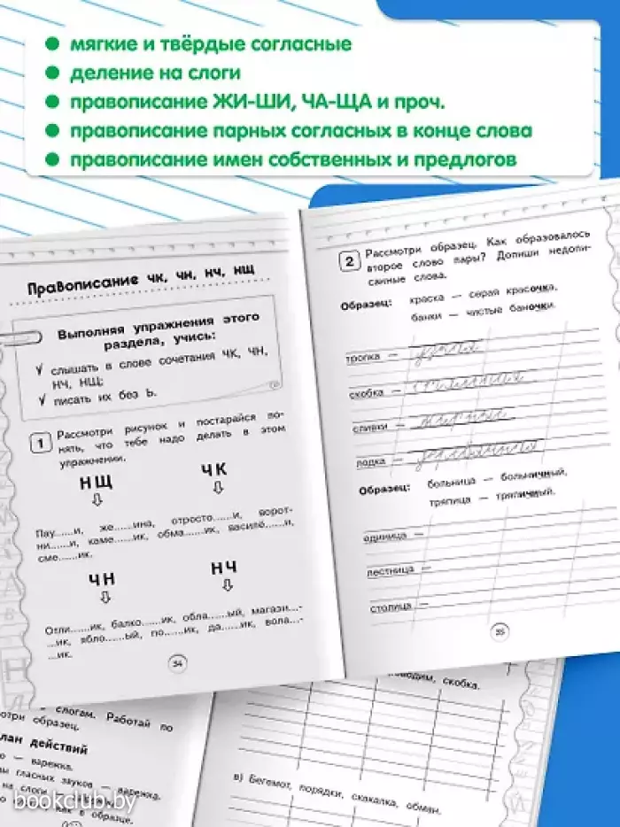 Пособие по русскому языку от издательства «Эксмо» подготовлено в соответствии с требованиями ФГОС для начальной школы и может быть использовано с любым из действующих учебников для 1 класса. Удобный тренажер с интересным современным макетом поможет ребёнку улучшить грамотность, восполнить пробелы, углубить и систематизировать знания. Занимаясь, школьник не только отработает основные темы школьной программы: правописание ЖИ-ШИ, ЧА-ЩА, ЧУ-ЩУ, ЧК, ЧН, НЧ, НЩ, парных согласных в конце слова, имен собственных, предлогов и др., но и научится работать по плану, то есть выполнять определенный алгоритм действий, который поможет ему осознанно применять правила. Когда навык грамотного письма будет доведен до автоматизма, результат в виде твердых знаний и отличных оценок не заставит себя ждать.