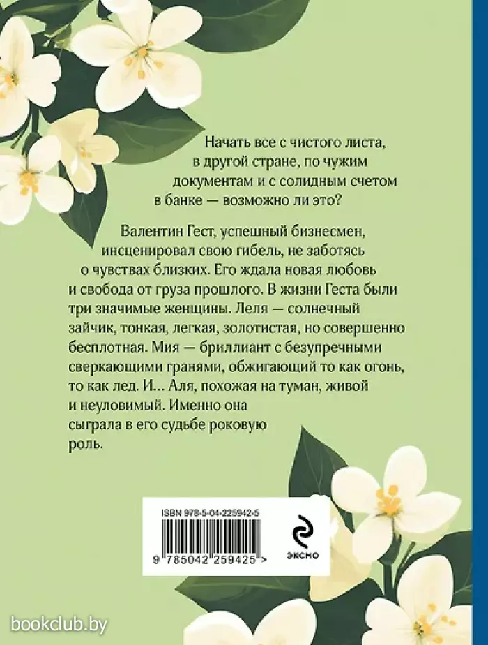 Финальная часть трилогии «Три цвета любви» популярного мастера любовно-психологических романов — Олега Роя. История, которая заставляет задуматься о настоящих ценностях в жизни. Начать все с чистого листа, в другой стране, по чужим документам и с солидным счетом банке — возможно ли это? Валентин Гест, успешный бизнесмен, инсценировал свою гибель, не заботясь о чувствах близких. Его ждала новая любовь и свобода от груза прошлого. В жизни Геста было три значимых женщины. Леля — солнечный зайчик, тонкая, легкая, золотистая, но совершенно бесплотная. Мия — бриллиант с безупречными сверкающими гранями, обжигающий то как огонь, то как лед. И… Аля, похожая на туман, живой и неуловимый. Именно она сыграла в его судьбе роковую роль. Книги издательства «ЭКСМО» из серии «Олег Рой - мастер психологического романа. Новое оформление» - отличное приобретение для вас и ваших близких. Для вашего удобства при оформлении заказа по телефону назовите код товара: 417079