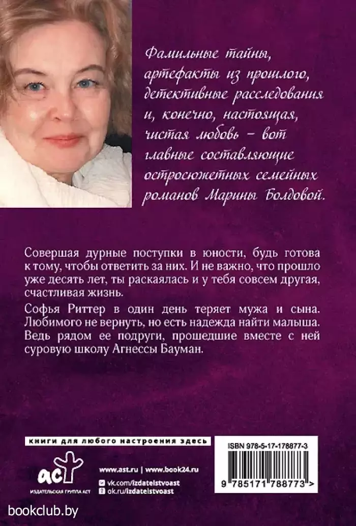 – Фамильные тайны, семейные интриги, скелеты в шкафу и, конечно, настоящая чистая любовь — главные составляющие романов Марины Болдовой.