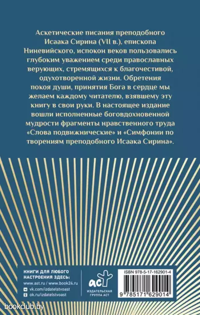 Аскетические писания преподобного Исаака Сирина (VII в.), епископа Ниневийского, исполненные тонкого духовного ведения и мистического опыта, во все времена были излюбленным чтением не только монахов, но и мирян Православной Церкви. "Слова подвижнические" были переведены с сирийского языка на греческий в конце IX – начале X вв. и получили широкое распространение в восточно-христианском мире. Первый славянский перевод появился в XIV в. Зрение духовных глубин, которого сподобился святой, всецелая устремленность к Богу, проникновение в Божественные тайны поставили писания преподобного Исаака Сирина в один ряд с творениями величайших богословов Вселенской Церкви.
