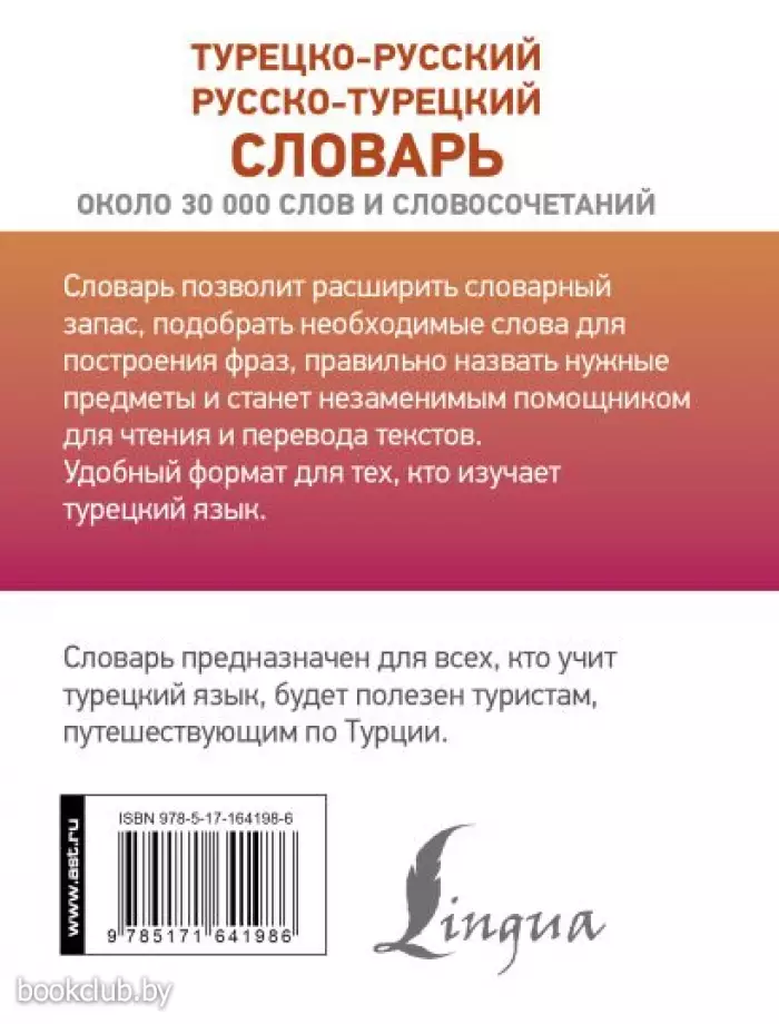 Издание предназначено для всех, кто изучает турецкий язык, читает литературу на турецком языке или планирует путешествие в Турцию. Книга от издательства «АСТ», входящая в серию «Карманная библиотека словарей: лучшее», принесет массу положительных впечатлений от прочтения и займет достойное место в вашей библиотеке. Для вашего удобства при оформлении заказа по телефону назовите код товара: 403816