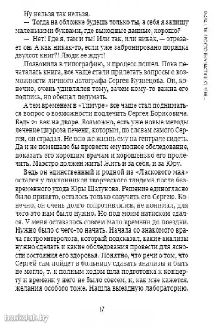 «Ты просто был частицею меня…» — очень откровенная книга, даже интимная, таких личных разговоров с Сергеем Кузнецовым, кажется, не было и уж точно, к сожалению, не будет. Здесь есть все: трудная судьба со взлетами и падениями, предательство и борьба, истинное творчество и, конечно, много любви, пронесенной сквозь года.